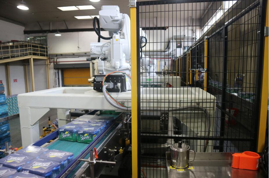 此設備是南京恒昌根據(jù)客戶的實際需求進行定制的,滿足現(xiàn)有普罐9箱、10箱花型、SLEEK CAN、MINI SLEEK CAN13箱花型碼垛需求,并且具備未來2*6、3*4、3*5花型升級功能和生產能力,單臺能力達到60箱/分鐘。設備主體采用ABB智能機器手,通過 SEW伺服電機帶動雙向絲桿,來驅動固定在2根進口導軌上的夾板,對包型夾護后由機器人來進行位移分道,轉向。設備運行穩(wěn)定,高效,占用空間小,減少了對箱包的碰撞和磨損。